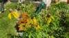 Two Zacks growing well. Borage and onions were companion planted. This year, most everything was started from seeds. Tomatoes are on a new truss system I'm trying out. On the ends, I planted sweet Williams from seeds and the transplanted into my plot 153.