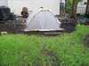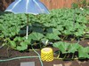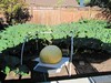 I opened up the rain/watering cover to give him a good view of what a realy good looking pumpkin looks like, and keep him out of my patch...