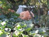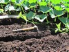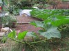 Lucky I was home, it started to rain so I threw a tarp on the 1126. This is the main vine that has grown out of the confines of the patch, and conveniently has swung over into the spent part of our Veggie garden beside the deck...how convenient.