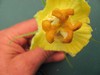 My own fault, didn't trim the leaf and put a protective basket over the freshly pollinated female, and a midnight skunk nibble the flower off and messed with the perfect lobes on the flower...not too bad...and totally my bad for being lazy.