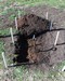 The selected planting site was carefully dug out and one section of heating cable was discovered. This also shows the depth the cables are placed and the drip tapes are also moved to a greater spacing to avoid soaking the area which will only increase the odds of rot at the all important crown region of the plant.