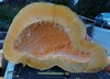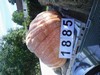 After all of the excitement at the scale here is an image of the pumpkin after being loaded on the trailer with a different viewing angle. This pumpkin is not only orange but even has some nice starburst speckling.