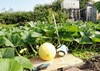 Problem with 874.8 stem. Vine can not move out of the way quick enough in the direction of the blue arrow. Pumpkin is growing fast in direction of red arrow and threatens to pull itself of the vine.