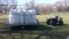 My new spreader, left bags on my snowmobile trailer and cut holes in bags and pulled it around with my 4 wheeler