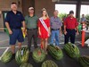 Here is how the NC Farmers Market Watermelon weigh in turned out today. Gentleman on far right won 1st place with 180lbs, to his left is Mr HC with 2nd place of 178.5lbs, continuing left is Robert Worley with 4th place at 135 lbs. Mine is last to the right for 3rd place with 158lbs.