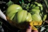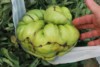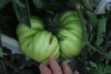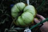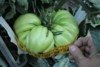 There is another grower in our club that grew the 4.66 Oxheart that had multiple fruit. I think last year some other flower from a BZ pollinated the oxheart when I wasn't looken. This was next to the 7.05 Porkchip last year. Normally they are single fruit. This whole plant had multiple fruit. Had some nice megablooms flowers that took near the top but the friggen deer ate them last month. This one is at the bottom. I swear this thing is over 60 days old and still green, growing slowly. BNOT talked about different plants crossing pollen and I am a believer now. Still going to call it an oxheart..