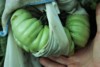 Believe or not, the largest I have going at this point is from last years small keeper from a 1.68 BZ that came from a nice ribbon stem when it was the next latest and greatest thing. Well, it's growing a nice tomato anyway on a round stem. From its first cool day in a long time to the next cool day, it went from hardly growing at all to +1.25" in a day. The temp really makes a difference. I put Sulphur powder on many of my tomatoes in spots where I worry about rot like the middle. I miss sometimes and it goes all over.