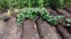 Corn & garden in background.