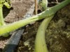 2363 Holland... this pumpkin is 10 DAP. I think the pollination was successful it's growing and is very shiny. Had to lift up the Vine to keep the stem straight and it had rooted in more than I thought. I carefully pulled the roots up and placed fabric grow bags under the Vine to hold it up and allow the roots to continue to feed.