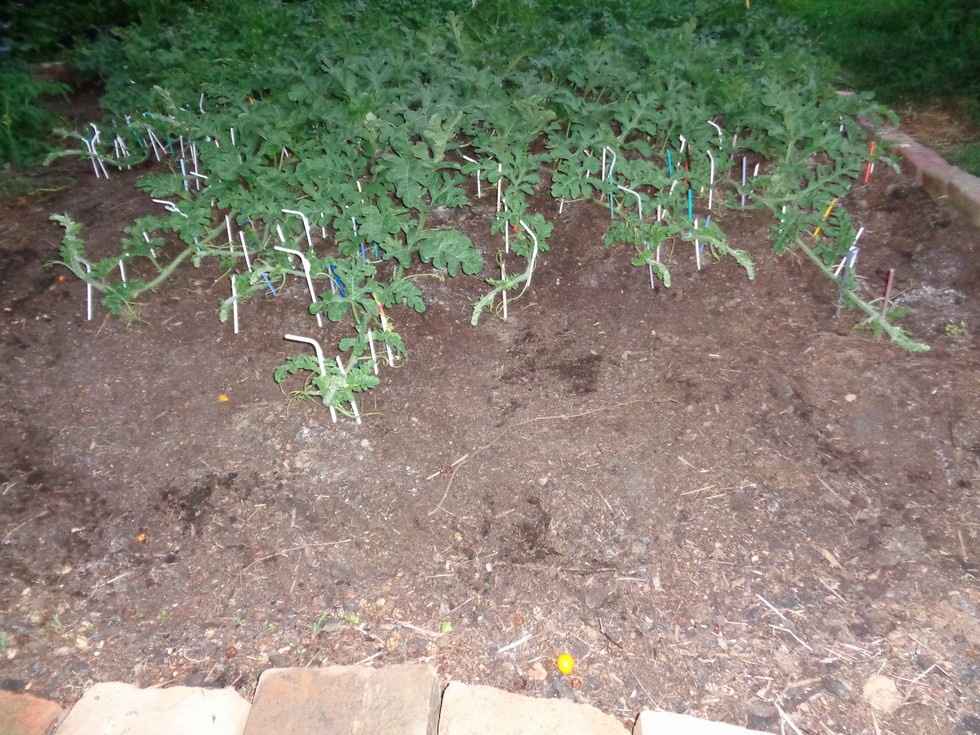 I counted 17 runners that are racing to the edge of the bed. I have stopped all other vine growth and this seems to have stimulated the ones that have been left to grow. When they get to the edge I will terminate their growth and allow a little growth to emerge elsewhere to replace leaves that will be getting old.