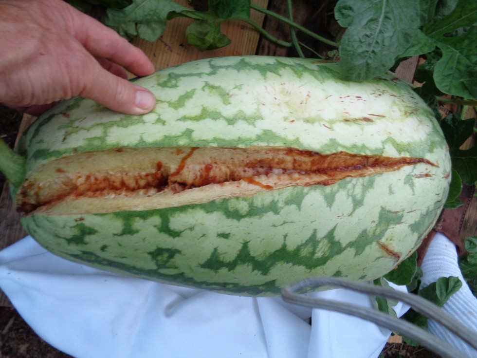 This is the effect of too much Forchlorfenuron and the sad part is the melon wasn't even growing fast.