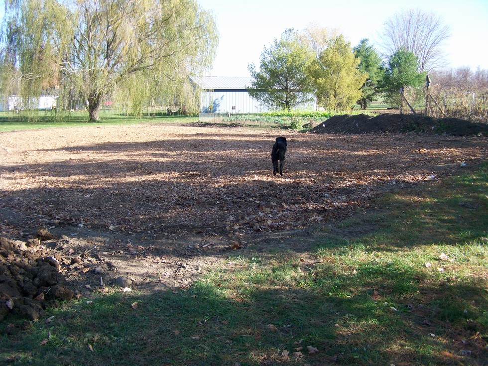 Then we run over them again and again with the lawnmower to finely chop them. When down they are about 3-4 inches deep on top of the dirt.