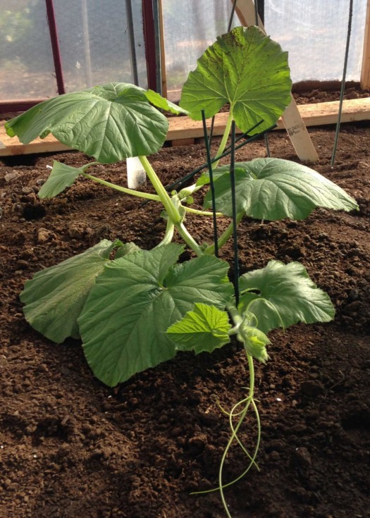 Harry (1666 Holland) has had a tough week. Growth has slowed a bit - I think because he wasn't getting enough light. I had put up a shade cloth to the south because the sun was causing him to flag early on. However, once he was established I think the shade slowed him down. THEN, it rained. We don't see much of that in Central Arizona. We can't drive and we do stupid things around our plants. My green house sagged from the rain and when I went to brace the structure - well, the plant got a gush of water. Had to prop one leaf up as a result. Hopefully Harry will like the 80 degree temps and do better this week. (He's been in the ground for a month.)