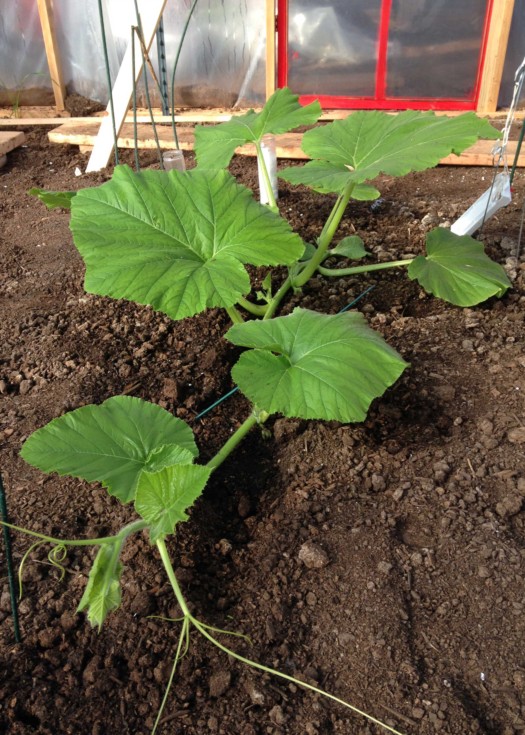 Puddles (1513 Sherwood) continues to stretch out. He's already outgrown the bigger cold frame I built for him last week. So, he's on his own to run inside the green house. I did open the roof on the greenhouse. I pulled the plastic back so there is a five foot opening the length of green house. The opening is covered by insect cloth. That should allow some of this week's heat to disapate and not cook the plant.