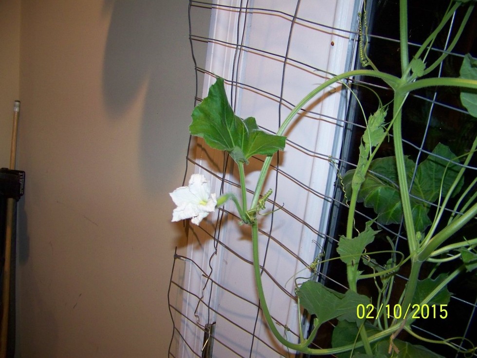 1st long gourd female on 2/10/15. only had a male long gourd so i tried to polinate it.