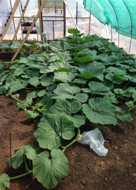 We finally pollinated the female on the 1666 Holland on March 14. I was in Las Vegas watching college basketball (Wyoming won the Mountain West)(Don't ask about Arizona State). Thanks to Dave Smith for taking time to pollinate the plant with flowers from his 1622 Young '09. Now I have to expand the small tunnel. The female is at the doorway. No place to grow. This is another plant that seems to like the extra shade I put up on the south side of the tunnel this past month. I will replace it with a 60 percent shade cloth tomorrow. The sun is getting high overhead and beating down on the plant.