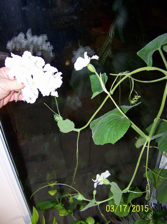 270 kent bushel gourd X 124 young long gourd. Finallly got the reverse cross, should have time for seeds.