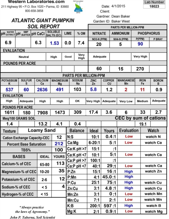 Here's the soil report for the plot growing the 1513 Sherwood.