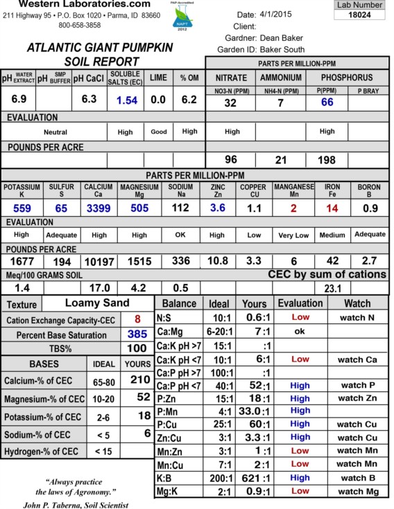 Here is the soil report for the South plot where the 1666 Holland is growing.