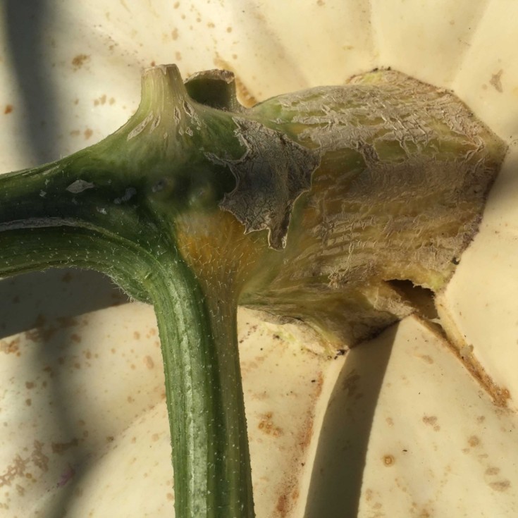 Well, couldn't go the season without something going REAL wrong. Got to the garden this morning and discovered I had a stem split on my 1666 Holland. 5-days until weigh-off and I got the chance to deal with this. Thanks to Dave Smith and Bart Toftness for talking me off the cliff. Treated the split with Captan. It appears to be about one-inch deep. I'll be nursing the plant until I cut it on Friday for Saturday's weigh-off. The Holland plant is 71 days DAP wot am OTT: 277. This one is my best bet to beat the record. Won't be as big as I hoped, but I've learned a lot this year.