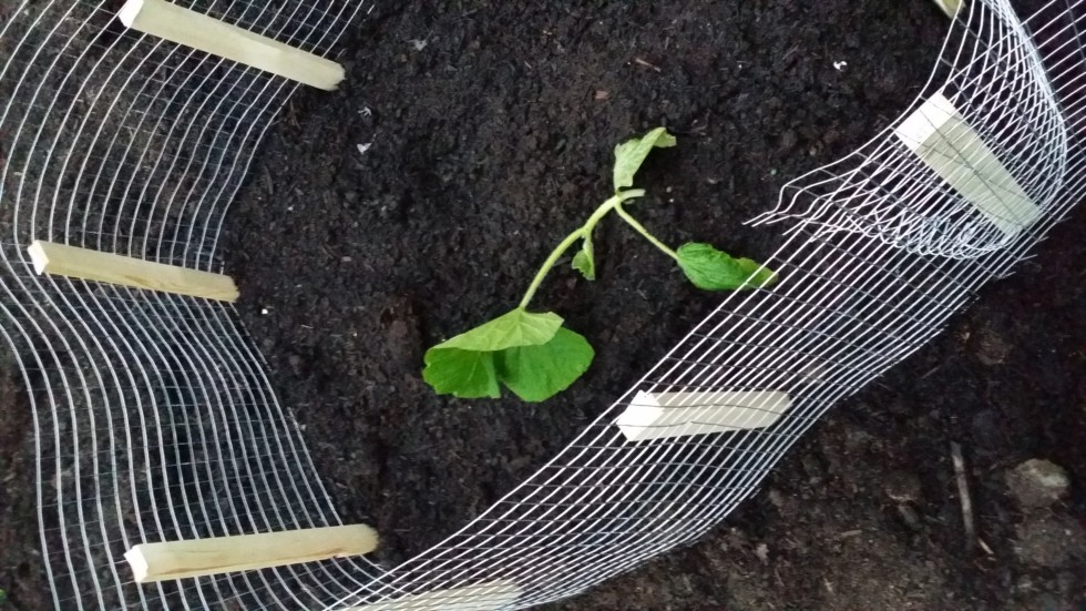 1231 Kline in the ground. Tried to be very gentle considering how leggy it was. Notice the squirrel protection...