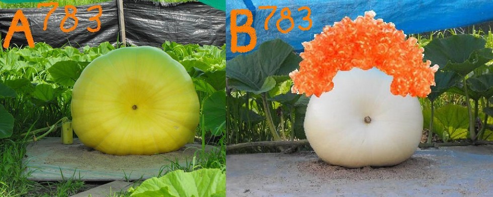 I noticed today that both of my 783 UOW Plants both A & B have kins that look a little different. One Kin, (A) is clearly going to be "Orange" but the other kin on plant (B) is clearly white but its telling me its actually Orange. I asked it what its parents colors were and it just pointed at its hair and looked at me in an insulting manner like...DUH? There will be a press confrence next week sometime on the issue and for now I'm going to contact the GPC on what rights that pumpkins have on identifying theirselves as being Orange. *****BREAKING NEWS***** This just in..This Grower has pictures of pumpkin 783 (B) at a much younger age that shows itself clearly as not being Orange and will post them soon.