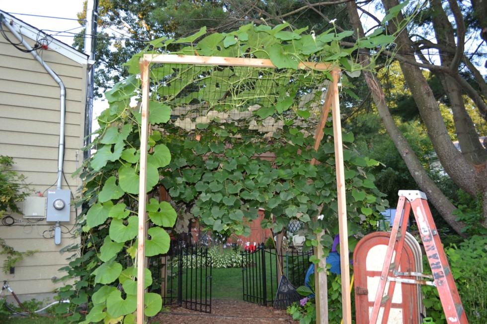 Lot's of long gourd vine, but no gourds yet.