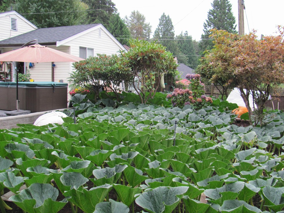 Now the rain comes down. 1126 fruit has been going Comando with no rain protection since I took down the first one that was way too small. 1124 pumpkin off in the distance below, has its rain protection so all is good there.