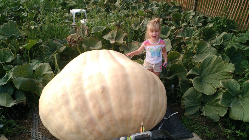 Alba with our slow growing 2009 big show pumpkin poker plant, way bigger than my Personal best, but still 200# behind the 2058