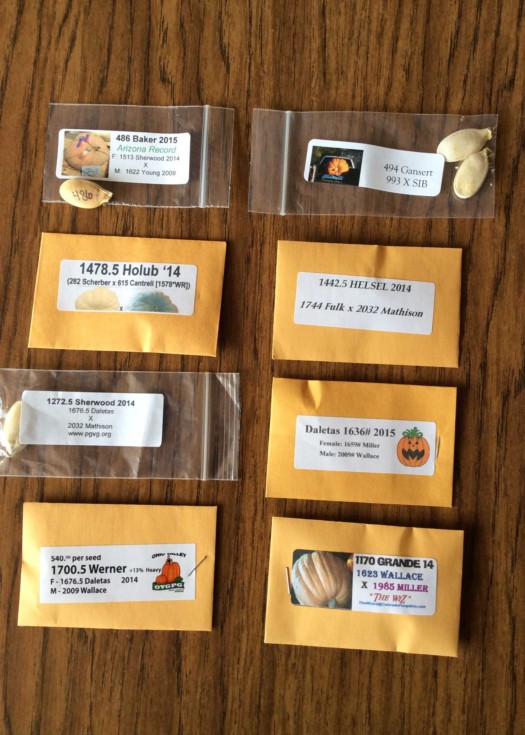 It's Christmas Eve and I needed to make my seed selection for 2016. I'm planning to plant eight pumpkins and keep four. Each mature pumpkin will grow in a 600 sf area (This is up from the 450 sf I gave the plants last year). I'll plant two pumpkins heading toward each other and choose one after they are close to meeting in the middle. This should work better than planting two on one hill and choosing one in the first couple of weeks.