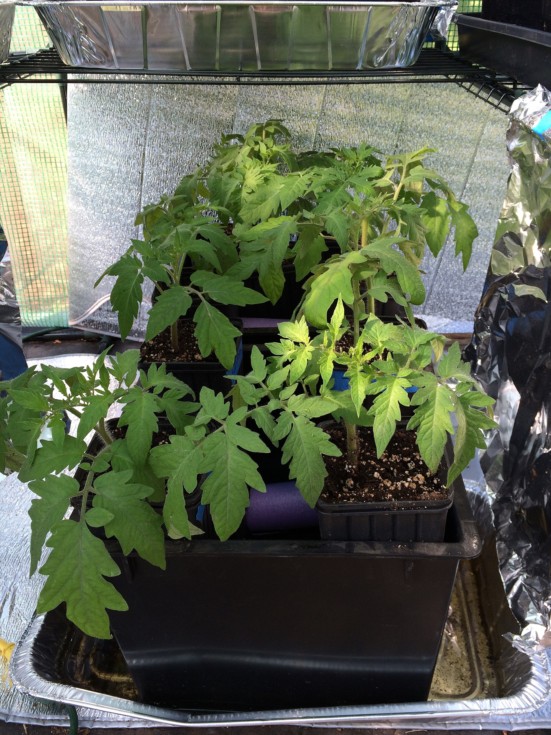 I have nine of these long pots going. I keep them in these crates with holes on the bottom so water is absorbed through the bottom. Under red/blue LED lights on a timer in the green house. This is the first year using LED's. Low power usage. The plants grow incredibly fast.