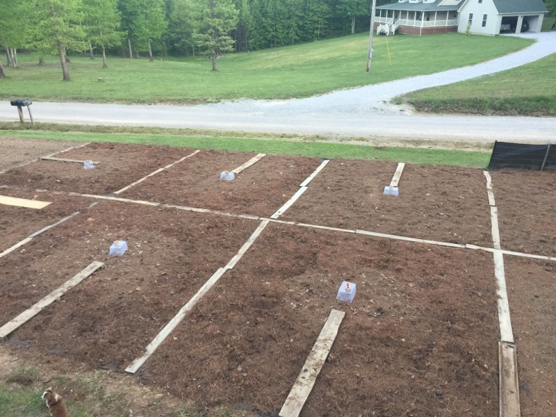 Took a lil while but got all the pine straw spread. Next is putting up the fence and installing the watering system.