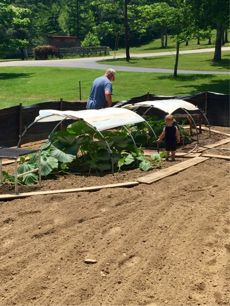 Briar had to get out there and help papaw water the kins.