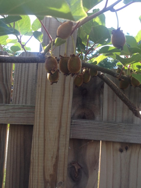 Some of our fuzzy kiwi growing on the vine. Won't be ready till around November. Maybe I can trade Chris Kent some of our kiwi for some of his lemons.lol