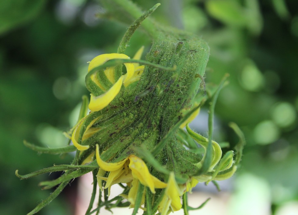 Here is a top view of the ribbon vine. The dark areas are where I used an electric toothbrush to vibrate the flower.