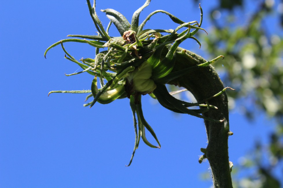 The Kraken is a mythological sea monster. The Kraken is a mythological giant tomato also. The cold, wet weather was poor timing during the time it was suppose to pollinate. One part looks like it did take. Just hope to get some seeds at this point. I will let it grow and hopefully grow something off of to get some seeds. The other large ribbon vine tomato on the Big Zac F7 looks very promising as we have had warmer weather as of late. I will not name it or post pictures of it until I know it is taking off!