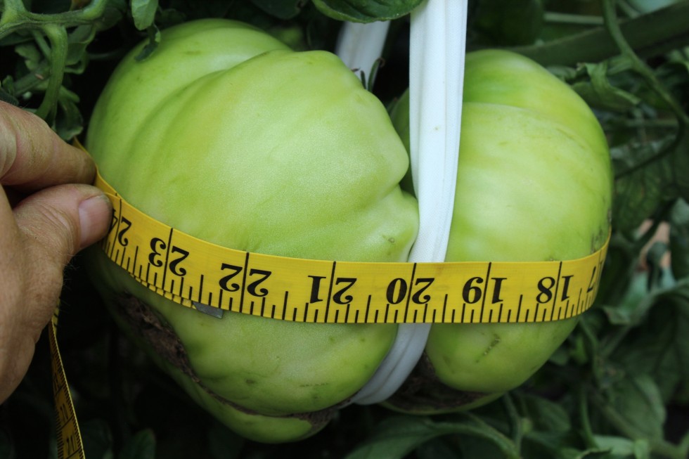 Wixom Slammer #1. This is the only Slammer in the garden with roots in the earth. Doesn't seem to make a difference if these are in the tub or not. Hope to get another week out of it. My goal is to break 5 lbs this year with something...