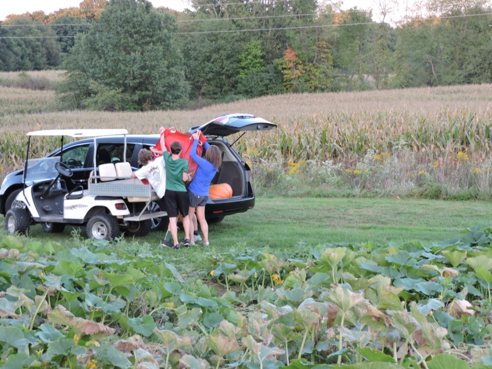 It's time for our annual pumpkin pickin' party. Easy does it!