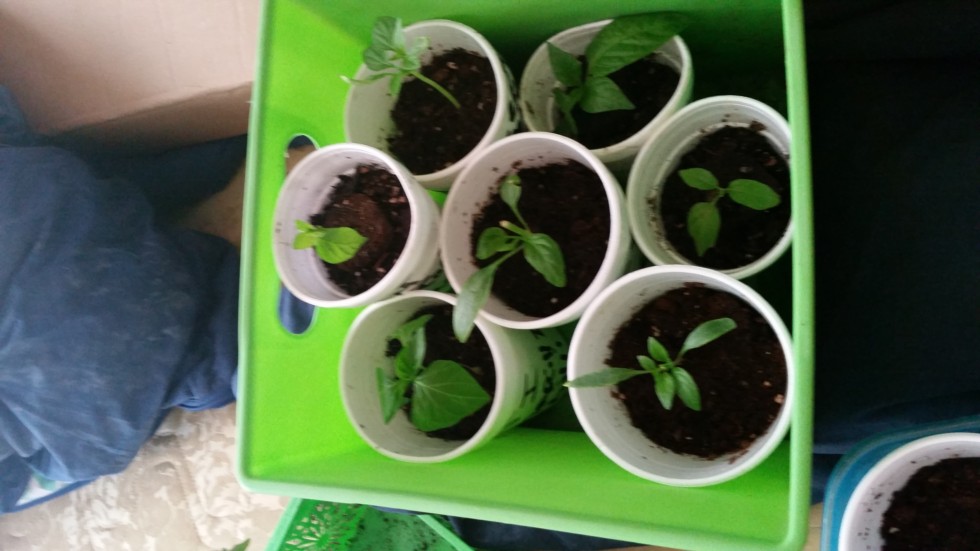 Hear are my hot peppers big jim chilis i topped and they are doing fine
