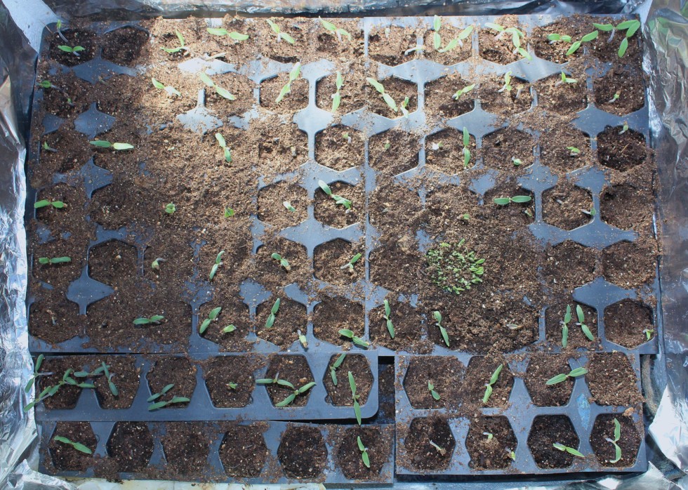 2017 competition tomatoes. Started seeds 8 days ago. Have been watering with willow water that I made. Stimulates root growth. Had a great germination rate. Many of the missing were due to a chipmunk that found its way into the cooler. Bastard! Could of been worse as many of the missing were from some of my own low budget seeds including my winter challenge effort and a few Big Zac no name seeds. But what did come up are the important one's including the names of Porkchop, LaRue, White, Megadom, Slammer, Konieczny, Sutherland, MacCoy, Foss, and a few of my own. Also, it wasn't a complete Megamutt meltdown! Out of the 6 Konieczny Megamutt's that I planted, I have one each of the "D" cross and "Z" cross in the bottom left row of the photo. All of my 6 PGVG competition seeds germinated. I have been keeping my temperatures up high from 95F-102F. This was a gamble but I think it attributed to a quick and successful germination. This is the Rebel part of my handle Garden Rebel.