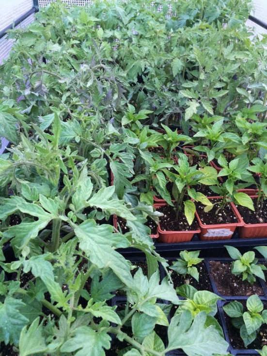 Tomatoes and peppers started 40 days ago. They need to get into the garden this week.