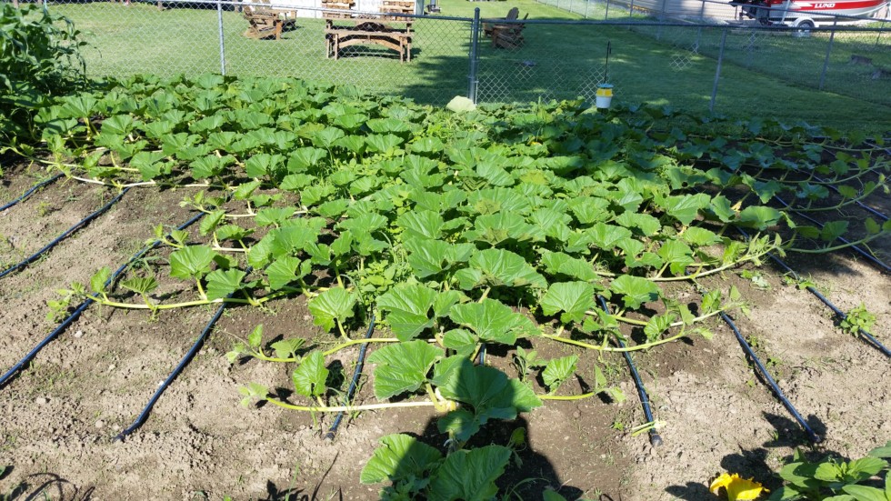 The 2066 Geddes is the most agressive plant I have ever grown. Low to the ground and medium sized to small leaves on it with 28-30 secondaries. Pollunated first one June 27th at 14 ft and a 2nd one today at 17 ft. One heck of a plant ! And yes...it's weeding day !!