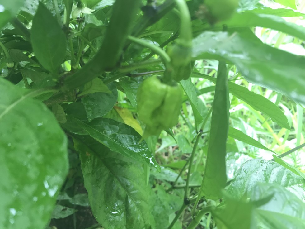 I should be scared about these. They are the Carolina reapers! I've got two plants of these. They are doing very well. Lots of peppers on both plants