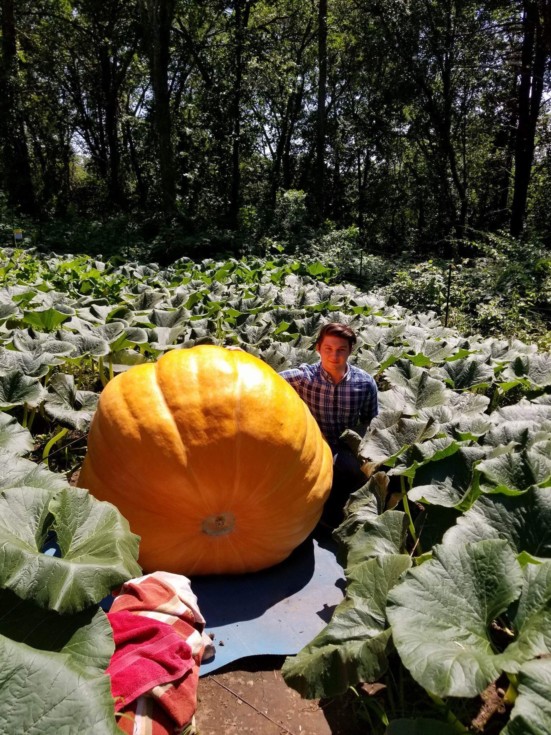 Hayden came over yesterday to check out my patch. I gave him a tour. Great kid. He's the kinda kid you could talk to for hours. Here he is next to the 1223.5 Gansert that I have going. I can't wait to see you again at the fair. Keep up the good work. Keep that squash growing man :) this pic may be sideways.