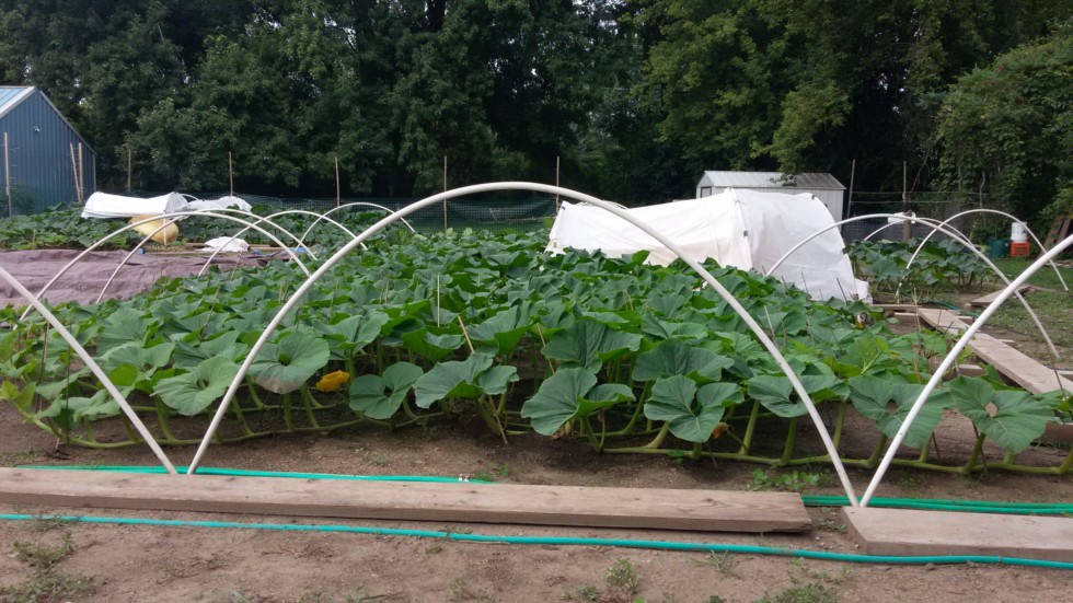 Picture of the frames to keep tarp up off the plant
