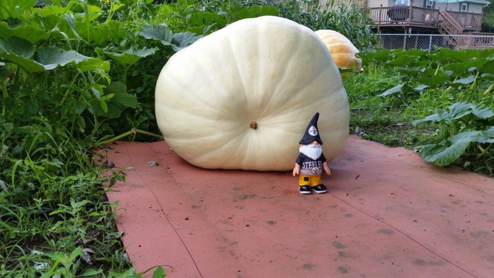 The 1998 5 on day 40 with half a plant behind it slowly growing at 387 lbs. Will look good on the porch.