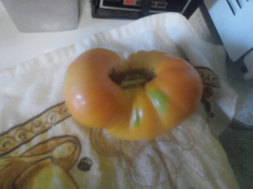 Picked my first eater amanna orange this plant has alot of nice blooms in it id like to cross with the 8,41 mccoy for the winter challange ????? Giant bicolor tomater