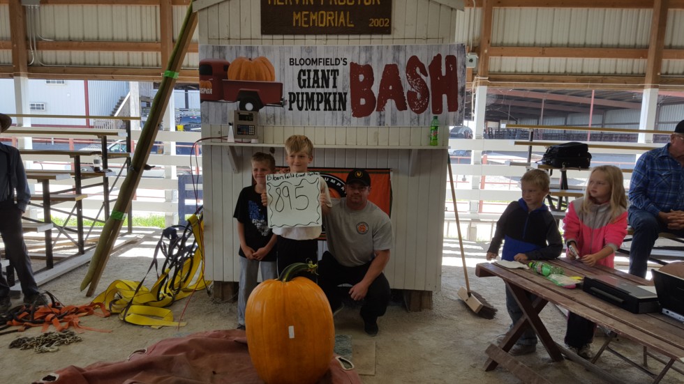 Caleb Jacobus won the field pumpkins contest. 89.5 lbs.