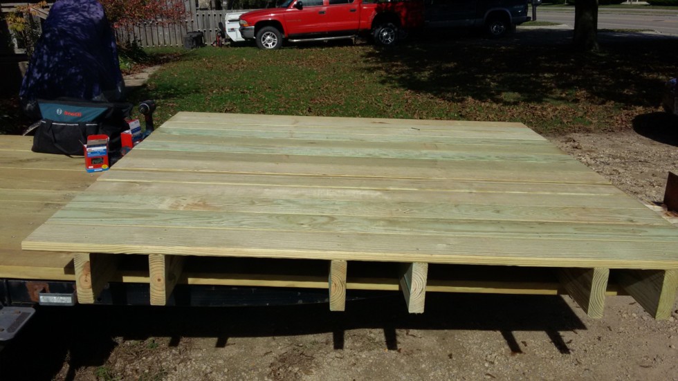 Mr. Pickles pallet is finally finished, 6ft x 6ft I had to make the base narrower to fit between the wheels. Use 2x6 to get it above the wheels.