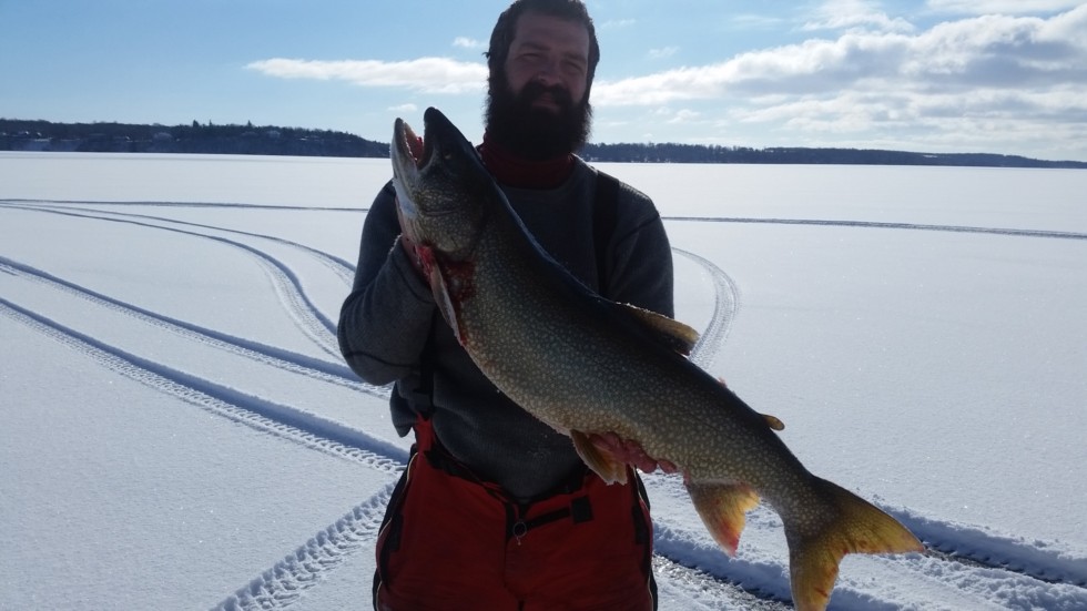 17.1 lb lake trout through the ice, what a blast!